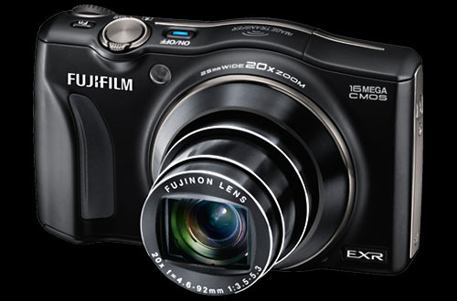 Super zoom with wireless capability. The Fujifilm FinePix F800EXR is a compact super zoom with 20x [25-500mm equiv.] optical zoom, sensor-shift image stabilization, PASM modes and wireless sharing capabilities via smartphones and tablets. The FinePix F800EXR features a 16MP resolution on a 1/2-in. EXR CMOS image sensor.