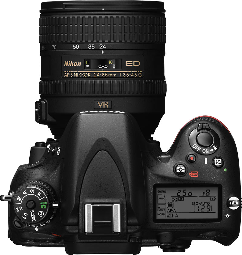 Included in the box is a rechargeable Li-ion battery EN-EL15 that can take about 900 shots (CIPA standard) on a fresh charge. Expect lower numbers if you use Live View a lot. A Battery Charger MH-25 recharges a depleted battery in about 2 hours 35 minutes; you can either plug it directly into a wall outlet (an accessory is provided to enable that) or use a power cord.