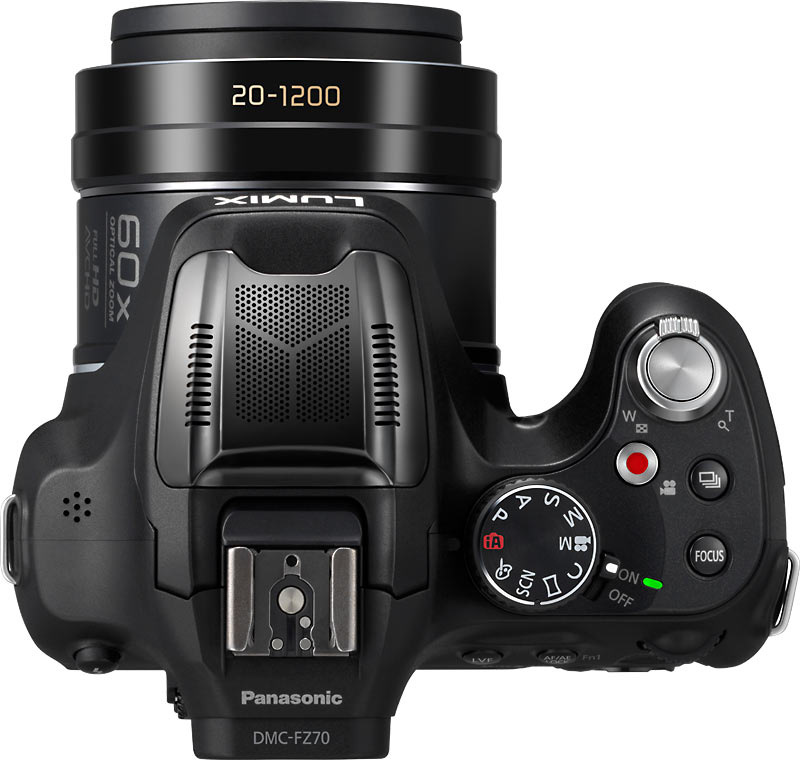 The Panasonic FZ70 has a LUMIX DC VARIO F2.8(W)-5.9(T) lens that provides a 60x ultra wide-angle optical zoom. At 20mm (equiv.), the starting focal length is great for ultra wide-angle shots that will allow you to include a large group of friends or capture wide landscapes. You can select a medium tele focal length (e.g. 135 mm equiv.) for portraits and the 1200mm (equiv.) super tele allows you to bring [really] far away subjects close.