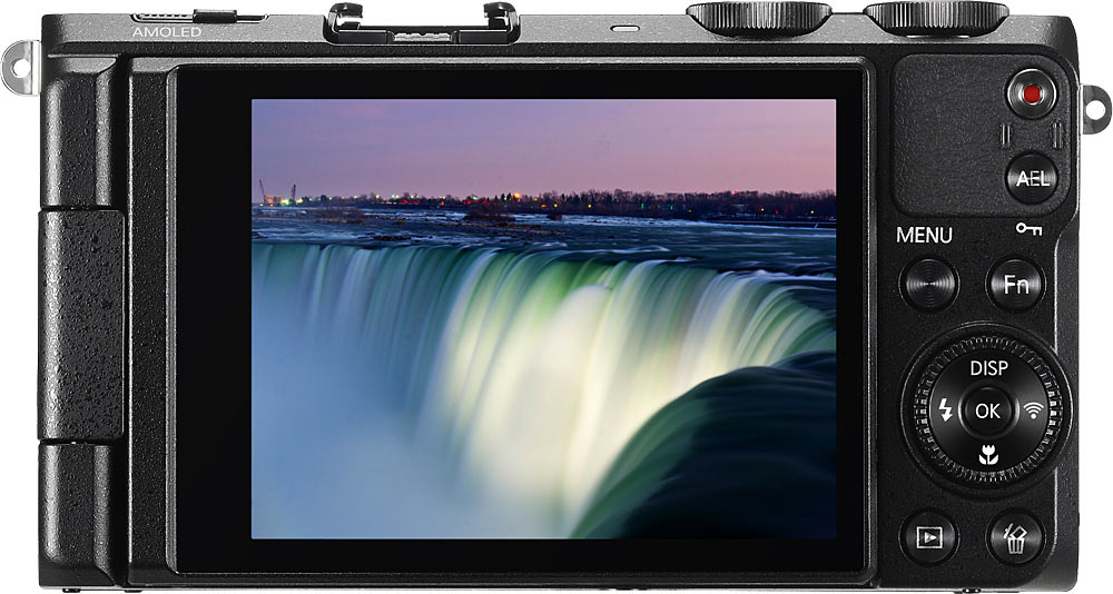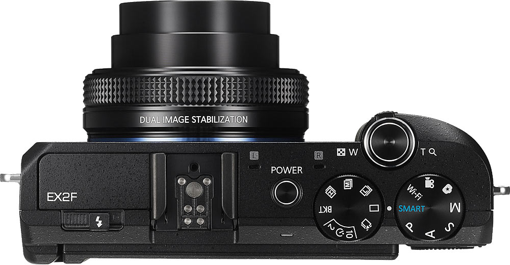 A large 3.0-in. AMOLED display screen with a high 614k-dot resolution takes up most of the space at the back. The AMOLED is a beautiful screen and has a fast enough refresh rate for a smooth display. The monitor’s brightness can be adjusted in MENU. The EX2F’s screen is one of the rare ones that gains up extremely well in low-light to allow you to see and compose in low light conditions. The screen can be pulled out and it swivels to point up, down and front, and can as well be closed for protection.