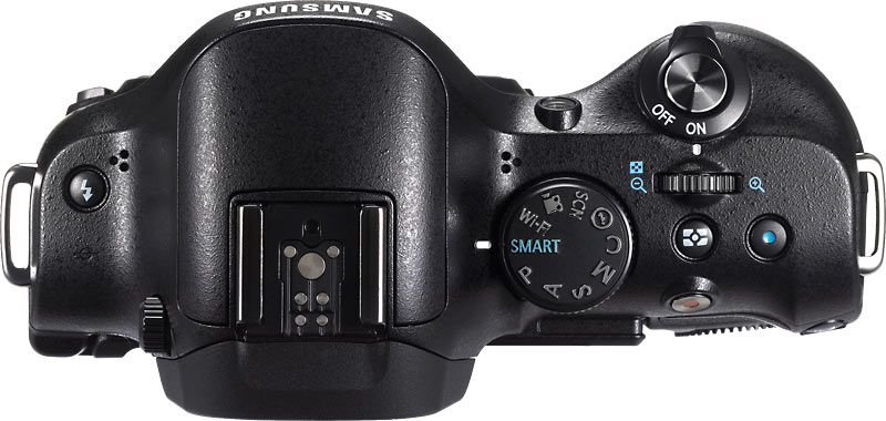 All the controls are to the right side of the AMOLED: dedicated Video Recording, EV, AEL, Menu, Fn, Navigation button (4-Way Controller with a scroll wheel, which Olympus calls the Smart Dial), OK button, Playback and Delete/Custom button. Samsung, unlike many camera manufacturers, seems to have perfected the size and placement of buttons and dials.