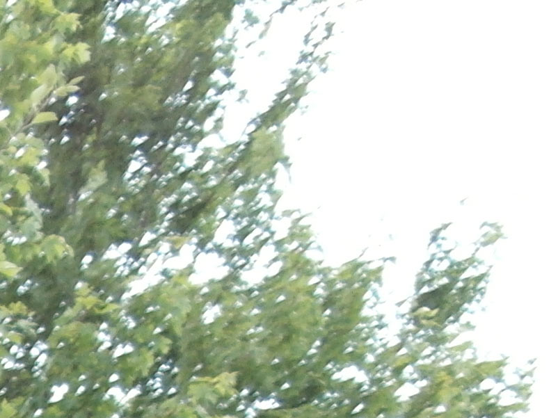 CA is negligible to non-existent in most everyday shots and even in very high contrast shots using the 18-55mm kit lens. The area delimited by the red square at top right, and reproduced at 100% crop at bottom right, shows no purple fringing.