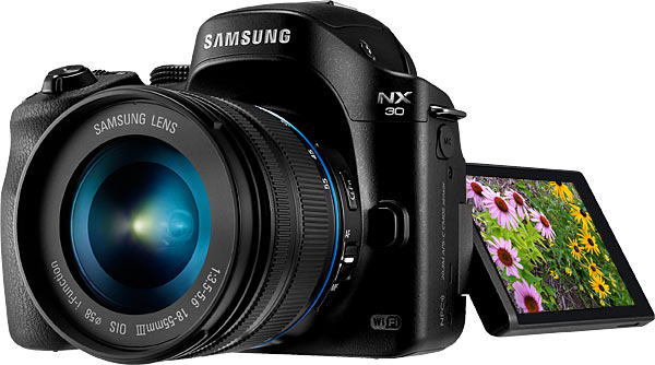 The Samsung NX30 is targeted to beginner and serious amateur photographers. It has 20.3 megapixel resolution on an APS-C (23.5 x 15.7 mm) hybrid CMOS image sensor with both Phase detection AF and Contrast-detect AF, and accepts interchangeable lenses on the Samsung NX mount.
